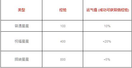 因为祝福星星跟捆装的比较难取得,通常都是6x普通星=600经验(60%加倍)吧
