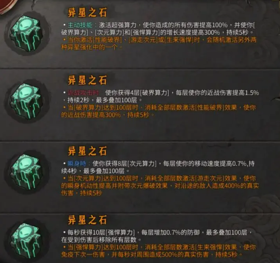 2、近战攻击时使你获得4层【破、界算力】,每层使你的近战伤害提高1.5%持续2秒,最多叠加100层;