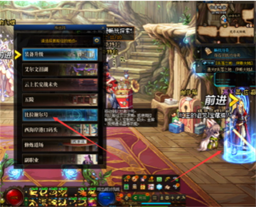 4、进入艾尔罗斯风暴逆鳞区域,再往右走,可以看到地下城选择界面。