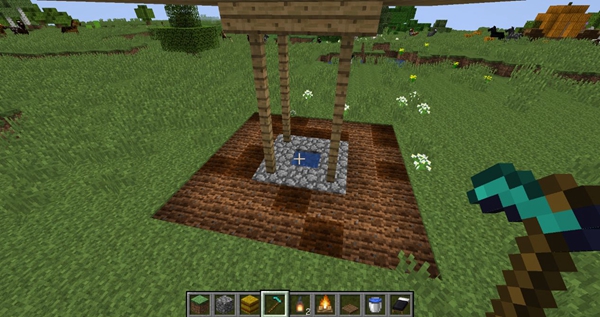 这个房子也是很好建的,随便找一个坑坑洼洼,小泥潭都可以,在用两个告示牌打在流水处,接着向里面挖啊挖啊就完成了。