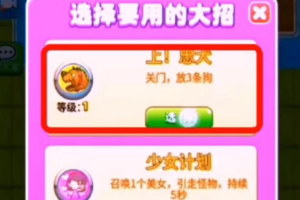 1、进入游戏后我们选择大招技能【上!忠犬】,然后匹配小僵尸怪物。