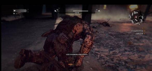 1、首先在消逝的光芒体育馆看到这个大块头出来的时候,直接拿步枪对准脑袋扫,没几下就可以将其解决。