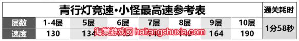 小怪最高速参考表: