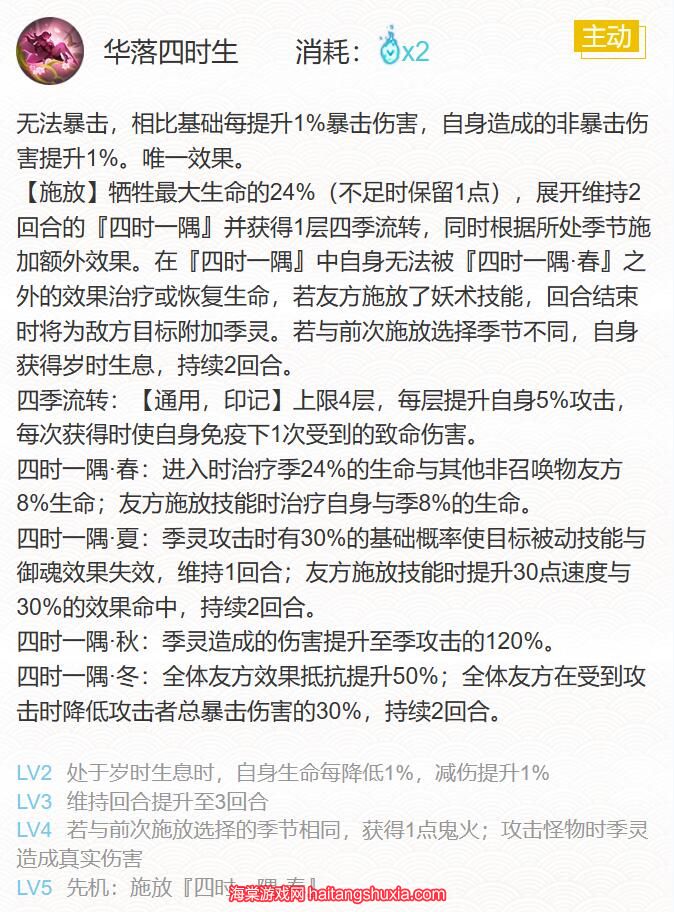 技能二:华落四时生(2火)