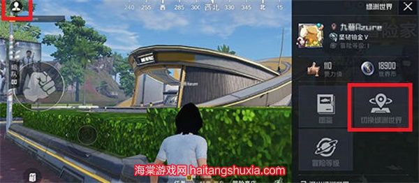 3:当然了,你也可以尝试人为切换雨天,就是我们点击左上角的小人,然后我们切换绿洲世界;