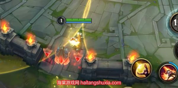 4、紧接着我们一定要从下塔过去,期间使用一次位移可以减少防御塔攻击次数。