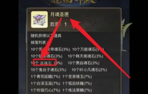 3、玩家可以在达标页面点击开启“月魂圣匣”,玩家有机会开出返魂石。