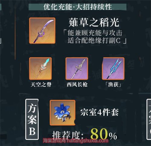 武器推荐:薙草之稻光、天空之脊、西风长枪、渔获