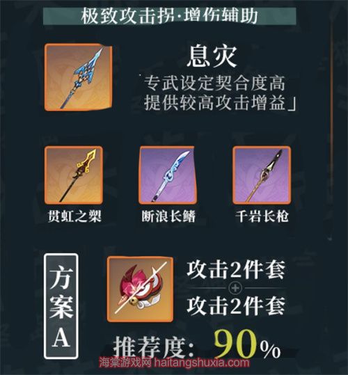 提供攻击力加成,适配于申鹤的元素战技。是辅助申鹤毕业圣遗物选择。