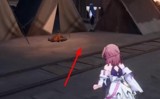 4、第三个尖碑在宝箱下一层,我们在一堆帐篷的中间,可以找到一个物理尖碑,如下图所示,我们使用物理攻击继续解锁。