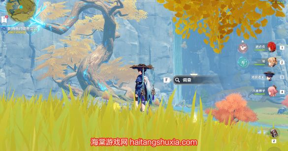 4、在伏龙树旁坡地上找到调查点,点击调查即可;