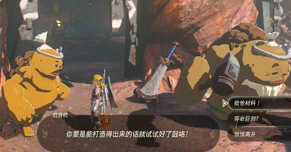 塞尔达碎岩巨剑无法修复但玩家可以在鼓隆城上方的打铁匠处重做碎岩巨剑。