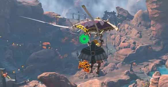 2、到达台阶上后是需要使用滑翔伞往下面飞,接着是需要找到呼戈,询问它们碎岩巨剑。