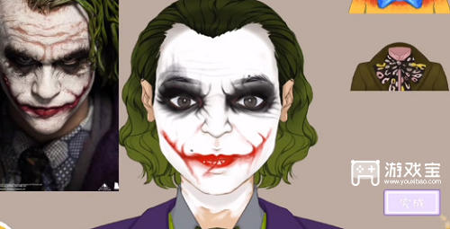 3、接着就开始画上小丑的妆容了,涂上白色的颜料,选择右下角黑色的眉毛。