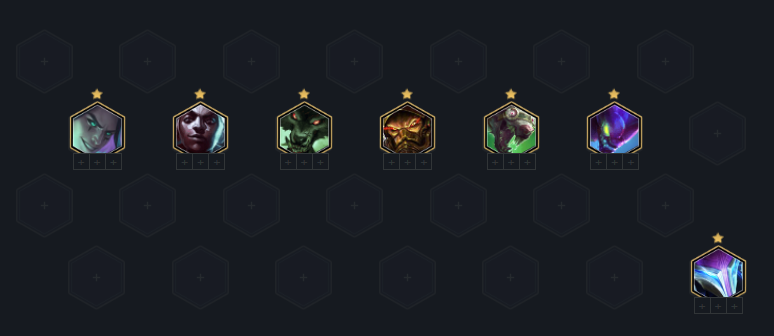 这是套2费“D卡流”阵容,需要追沃里克三星,硬性要求刺客转职一个,这套阵容成型后克制版本大部分热门阵容,咱们没遇到明显天敌,但阵容不能强玩,沃里克来的少请考虑其他阵容,如刺转刀妹、加里奥、纳尔。