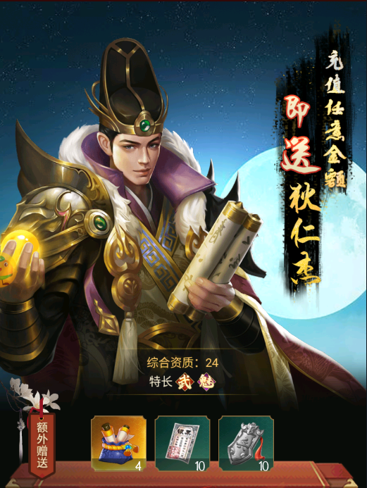 在这里我要安利一下只需六元钱就可以得到的狄仁杰,这帅哥不但颜值高,武力值也很高,是大家升级打怪的好帮手。获得门客后,你需要用银两来为他们升级,所以这游戏里银两和兵力也是永远都不嫌多的。门客的属性会加成到玩家身上,所以说他们是你的分身也不为过。请注意,提高门客属性是提高你的势力值的最重要手段。