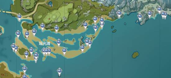 原神星螺是重要的突破材料,是璃月地区特产,主要分布在海边沙滩上,具体位置分布参考下图: