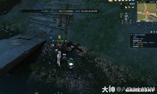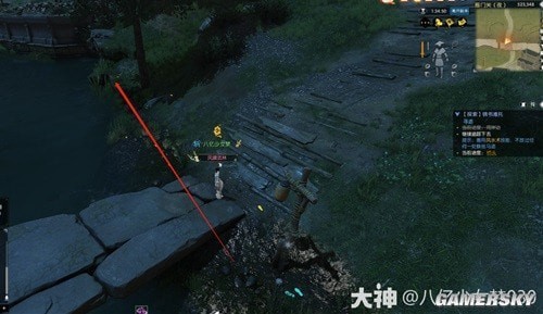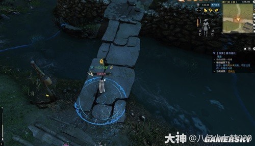 沿河边走到桥头,524.346,图示位置风水术,进度:浅滩→桥头