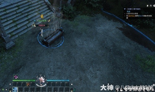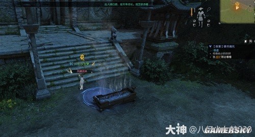 打完回到旁边的黄色脚印位置,360.285,脚印使用风水术,进度:花丛附近→牧场