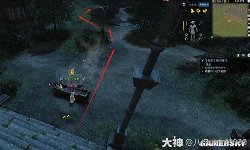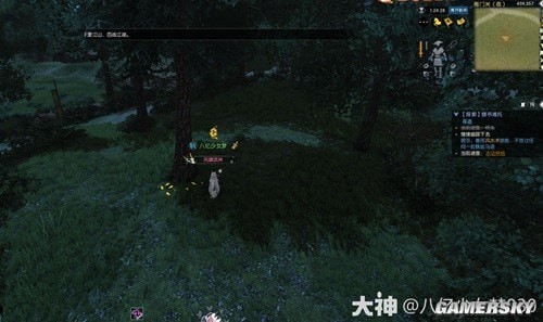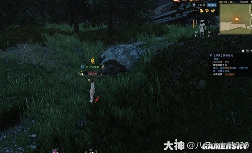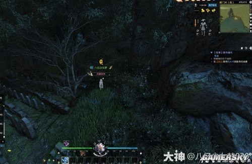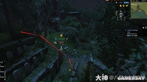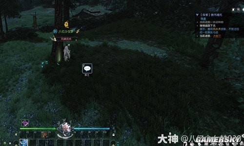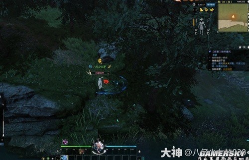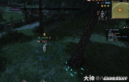 往前走一点,453.349,黄色脚印位置用风水术,进度:大树下→林中