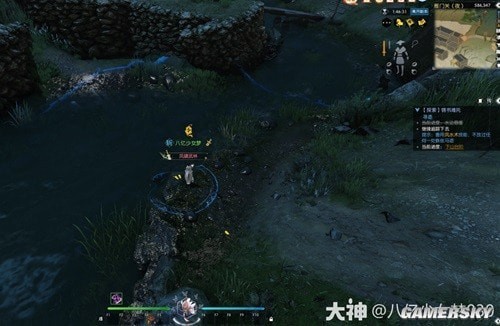 继续,旁边的黄色脚印,583.351,使用风水术,进度:水畔→浅滩