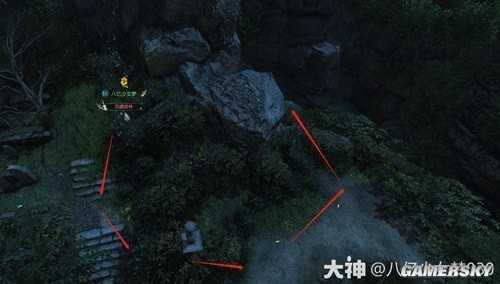 下个点往山上走,在悬崖边两对脚印位置92.245使用风水术,进度:上坡路→月下