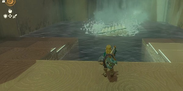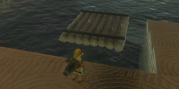 4、进入神庙后我们一直往里走,对水边的木筏使用倒流之力,然后跳上去来到另一边。