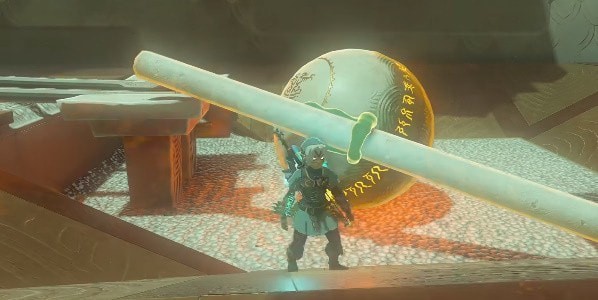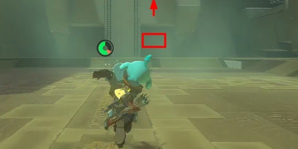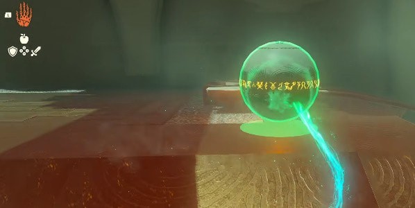 7、跟随小球来到另一侧以后,使用究极手将小球放置到下图位置,就能打开鲁纳奇塔神庙大门完成通关。