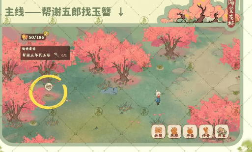 2、主线任务2:帮助谢五郎找到丢失的玉簪,在左边第二棵桃树下可以找到。