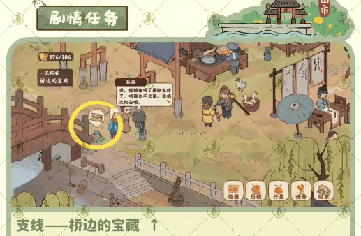 8、支线任务3:桥边的宝藏,需要我们来到集市的桥边,如图所示的位置,在这里可以找到宝藏。