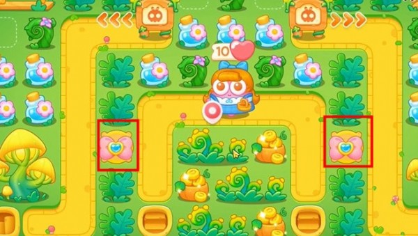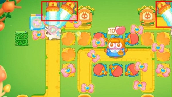 1,进入游戏后玩家是可以看到这里是原本就有这个蝴蝶结,然后玩家最好是将这俩个蝴蝶结都升级起来,这样还可以清理掉旁边的障碍物。