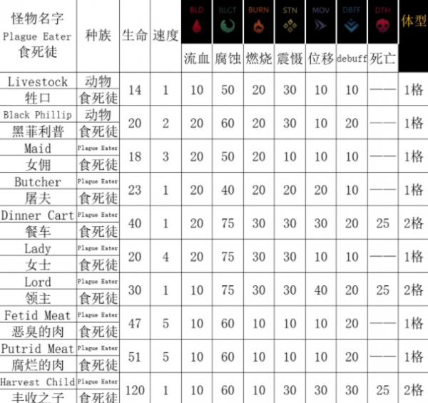 牲口是食死徒们的食粮,也是它们驱使用来作战的基础单位。高阶单位如女士、领主可以直接取食牲口的肉来补充血量。低阶单位,如女佣、屠夫,它们在场时则会给牲口异同的增益,并且与牲口产生异同的交互。