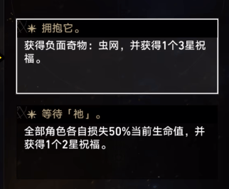 赌狗玩家可以选择"踹他一脚"获取负面奇物和三星祝福,保底玩家就选择舍弃一个1星祝福,获取一个2星祝福