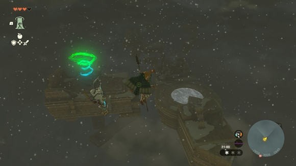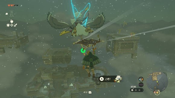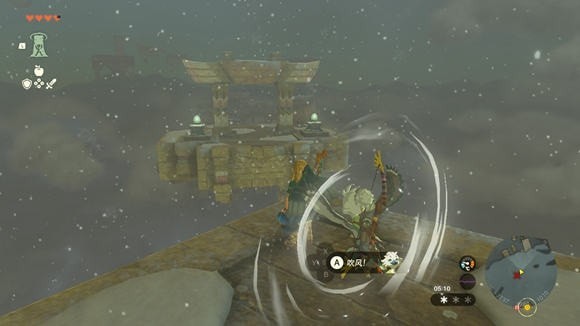 风之神殿就隐藏在利特村上空的云团当中,而要前往云团的策略就是跟丘栗2个人一起不断的跳跃建筑物,然后再到云团周边的帆船,利用帆船的船帆进行跳跃,类似蹦床,一直跳上来。