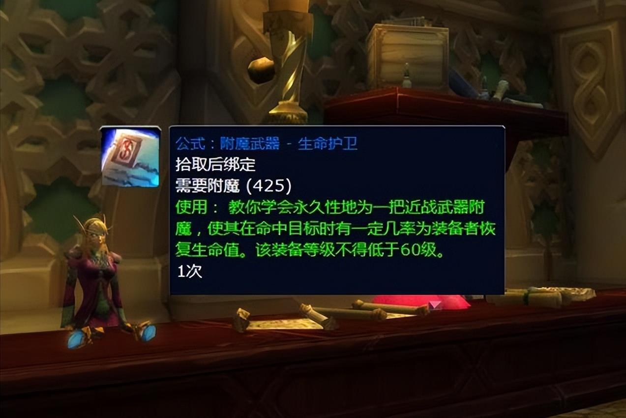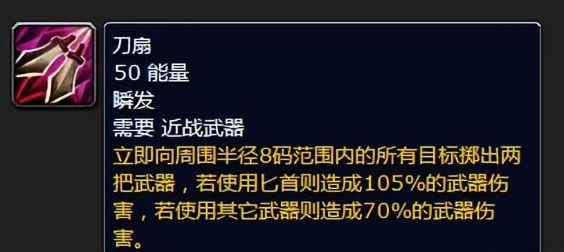 WLK版本还有一个刷小怪非常好用的武器附魔——生命护卫,该附魔的效果可以让近战武器在命中目标后,有一定几率为玩家恢复生命值,盗贼的刀扇技能就可以触发该附魔特效,这样盗贼在血量危机的情况下开闪避技能,然后通过刀扇和武器附魔的效果可以快速恢复生命值,大大提高续航和容错率。