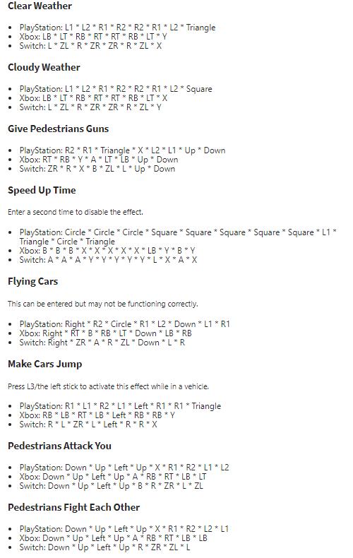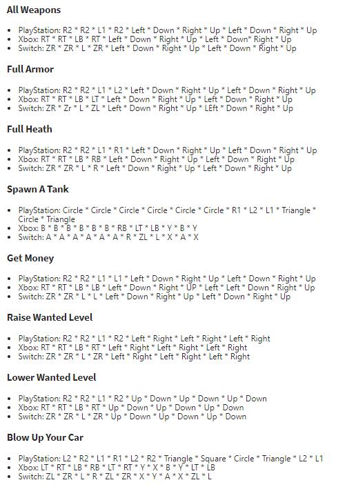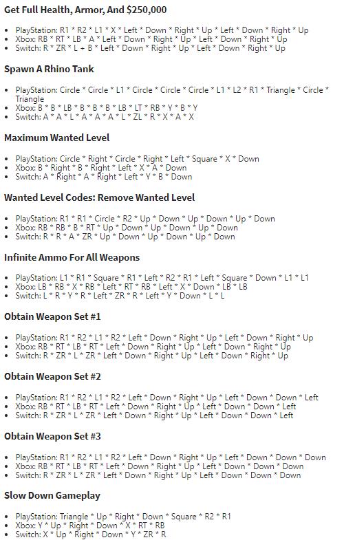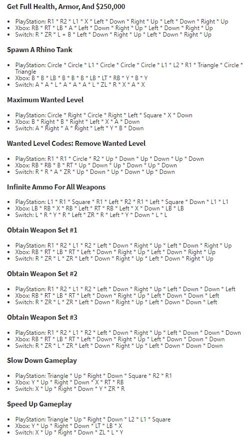 近日,国外游戏媒体Gamespots整理了《GTA三部曲:终极版》里三款游戏主机平台(PlayStation、Xbox、Switch)的作弊码,经他们验证游戏作弊码被保留了下来,不过并非全都有效,但绝大多是还是可以使用的。玩家可以多尝试几次。