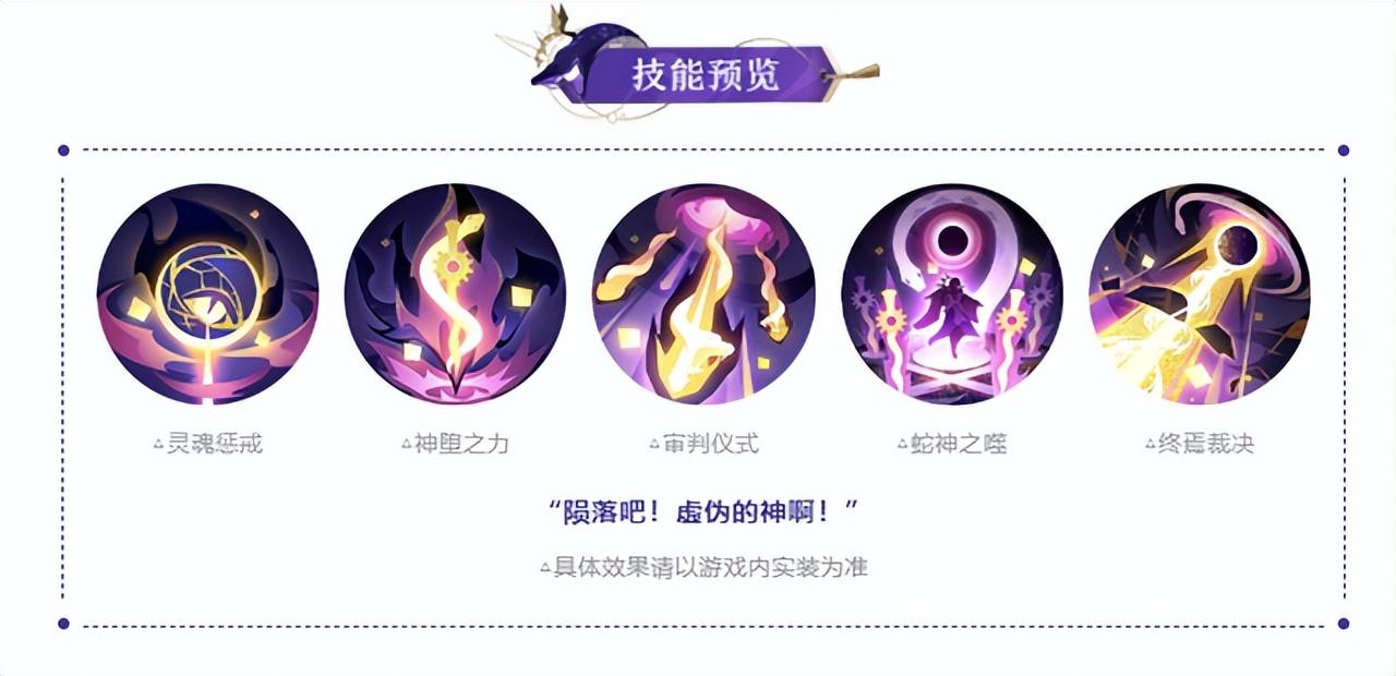 二技能“神堕之力”属于一个状态类技能,延续了大蛇的“蛇化”效果,但是SP堕神八岐大蛇的蛇化是基于自身的状态更改。释放后会在自身召唤出一条白色巨蟒覆盖原先的人形态,从而进入某种二技能的特定状态。