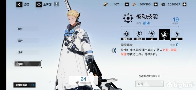 11:SSS级被动:霹雳爆发:出场送大招,出场送大招,这波出场绝对不亏,在弧光被换人出场是黄色三消,可以直接接蓝球触发核心被动,开启这个被动后,额外赠送了大招状态,但是原来大招的一半时间,不过也很香了。到了SSS级可以作为输出的存在了,突击鹰全员猛男!而且这个被动很契合换人流的套路,每次切人都有4S,并且送4个信号球,切人CD是15S,那么如果库洛姆之前攒好大招,在换人的操作中可以实现共计12S的大招状态。