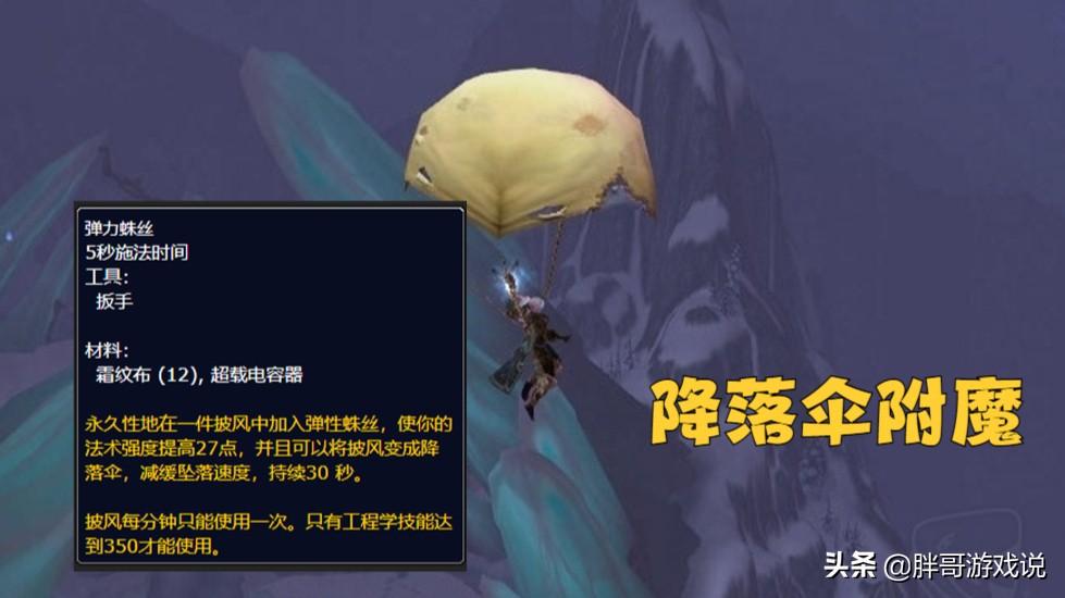 看似裁缝披风的附魔很强大,但是在内置CD的影响下,这些附魔的收益基本持平工程披风附魔,并且工程附魔还多了一个降落伞特效。