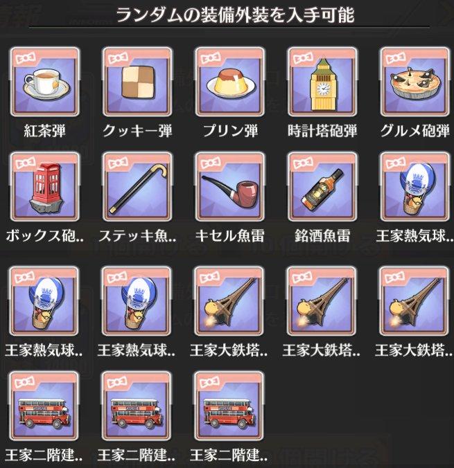除此之外包括烟斗、红酒还有拐杖都变成了鱼雷,很难想象皇家的驱逐妹子和轻巡一群女仆发出来的鱼雷会是这种绅士类的玩意,当然包括铁塔、热气球还有巴士等外观装备都有,好在皇家的航母还算强力,就是每次都出三组,这哪儿受得了,刷到肝疼怕是都弄不齐。皇家的外观装备箱还挺有趣,吃的喝的用的一应俱全,看来这群老太太的淑女都是表面上装出来的。