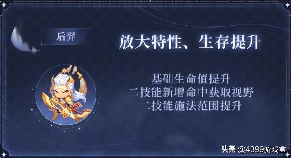 后羿必备的吸血刀得到增强,二技能范围提升还可以获得视野,可行更加安稳的度过发育的前期,而蒙犽的回血速度比之前更快了,打野看到都得绕路走,不敢轻易招惹!