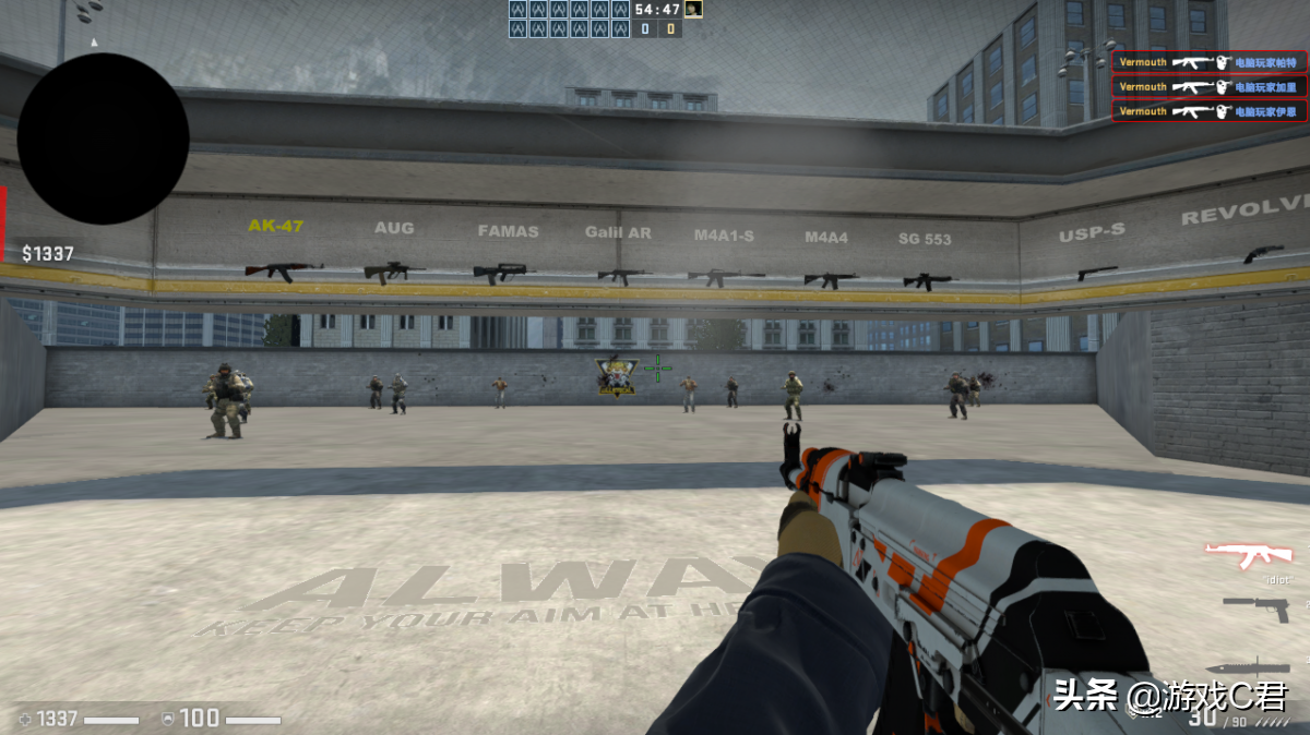AimBotz-Training是《CS:GO》中最热门的一张练枪地图。在该图中,玩家身处于场地中心,四周皆为BOT,任由你来摆布。