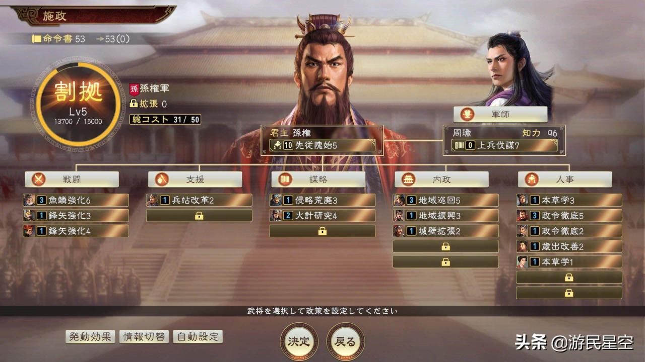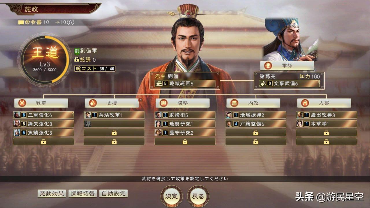 除了依据君主的“主义”让组织有所差异,让持有「政策」的麾下武将适材适用进行部署,可以让「施政」千变万化。