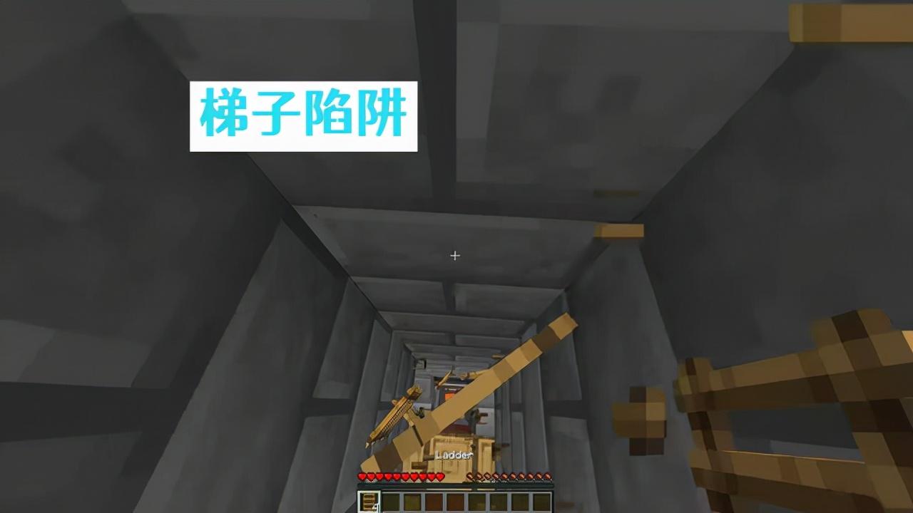 尽管有了“脚手架”的存在,但是在房间的设计上面,梯子依旧是主流的选择。首先在搭建梯子的一排方块下面,部署一个活塞,楼上的出口处,摆放一个侦测器,当玩家从下方梯子,步骤上分出口的侦测器时,利用红石传递信号给下方活塞,推动整排方块,梯子会直接掉落,玩家也会从梯子上直接摔下去,下面的位置还可以准备一些“岩浆”。