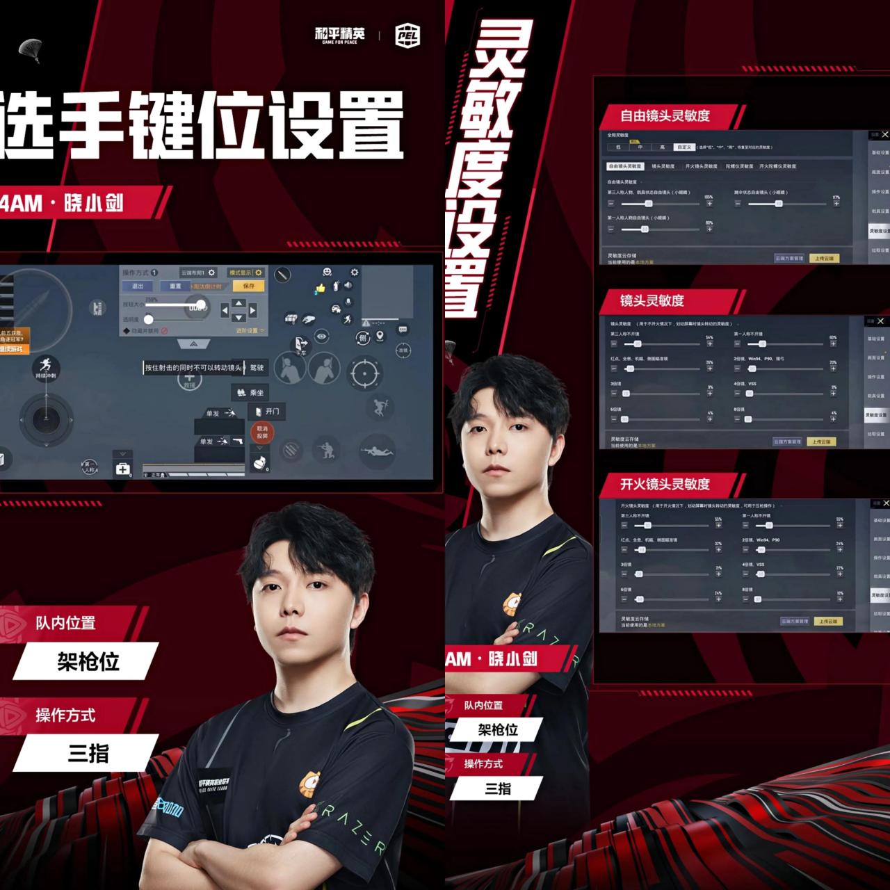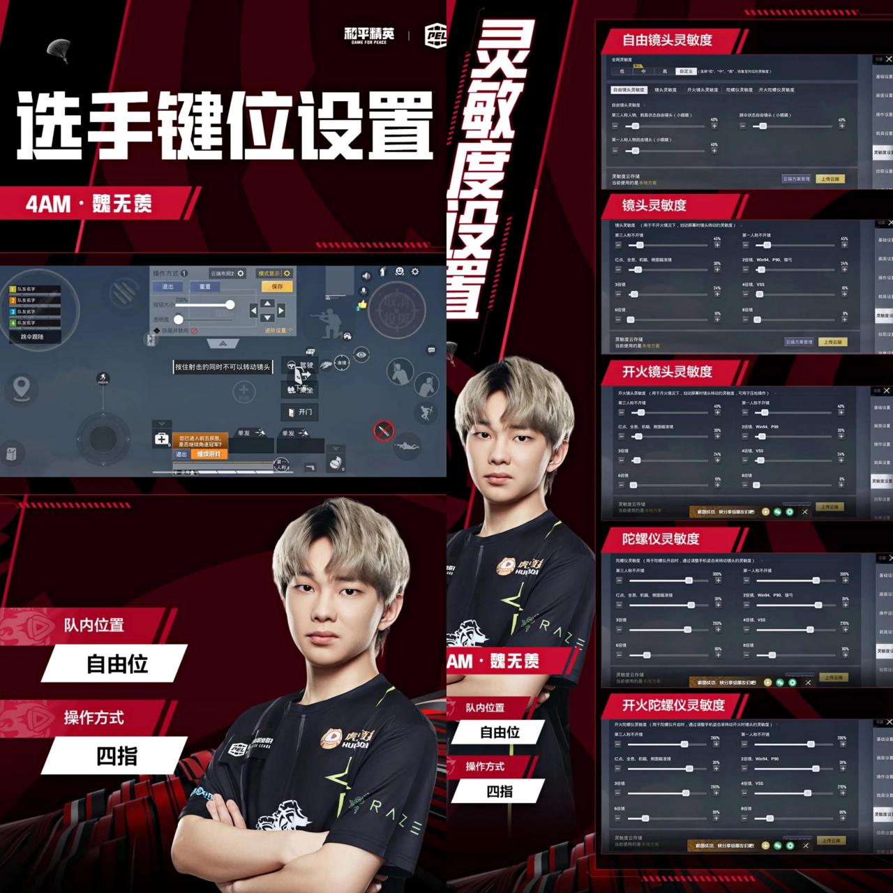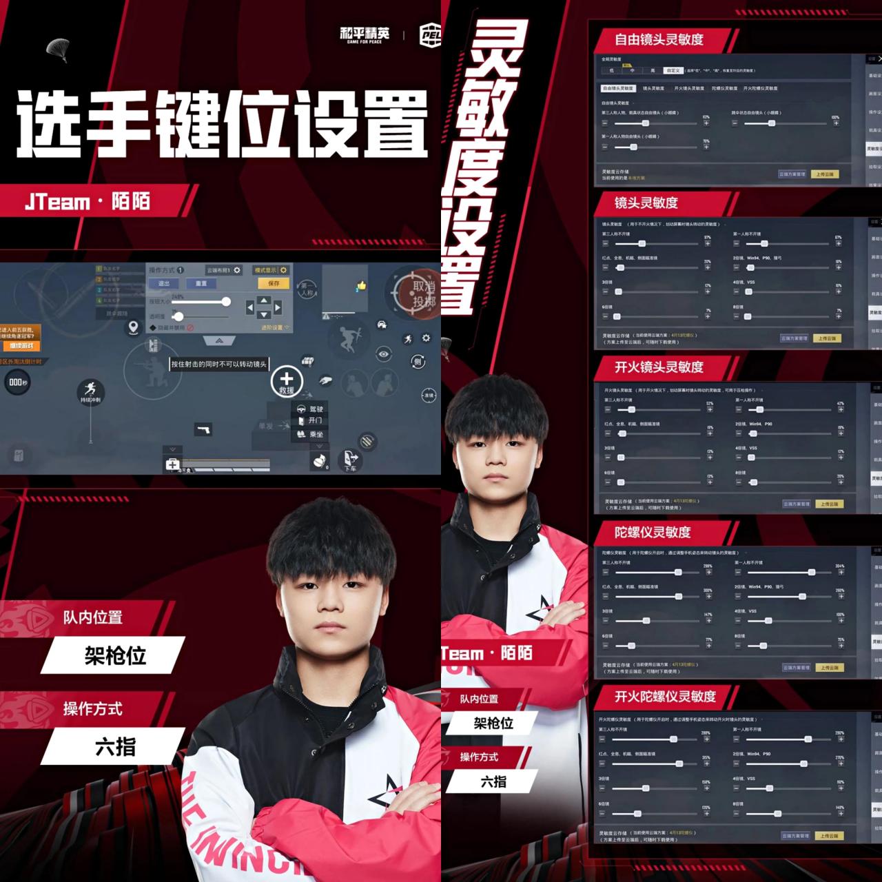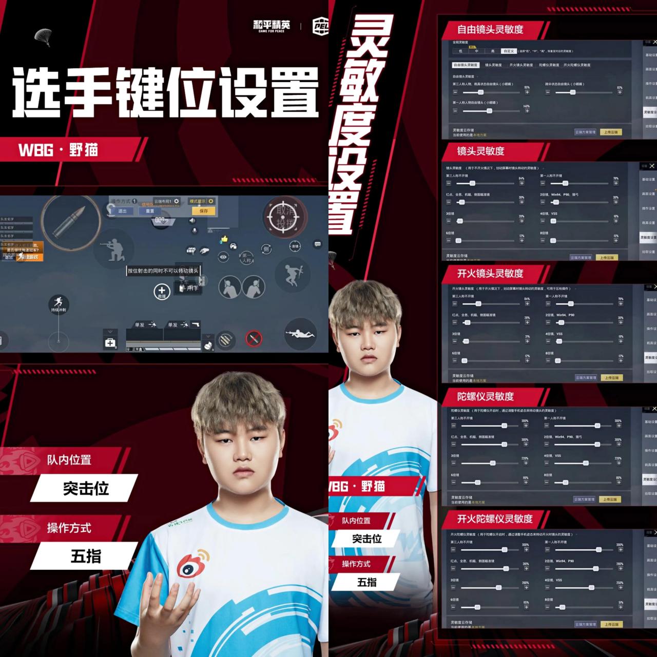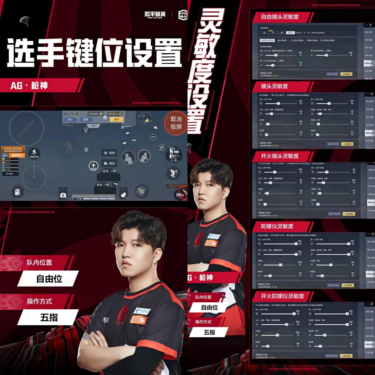 他是五指步骤的队内位置是自由位,大家也可以参考一下他的键位面板还有灵敏度。