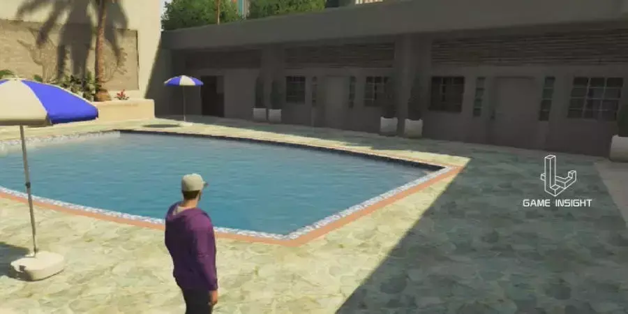 洛圣都地图中间有一家大型酒店,这家酒店有一个非常大的游泳池。而地图上却是没有标记的,从街道上也看不到,只有玩家乘坐直升机往下看时才能发现它。