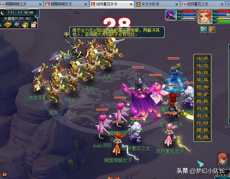 →吴天兵(战斗)防御即可,两回合主怪后会自动跑