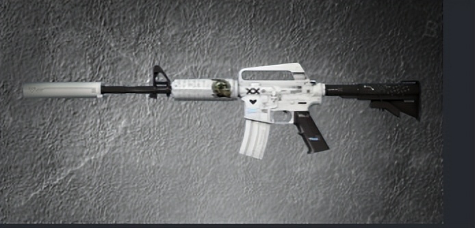 第三款推荐的是M4A1消音型|印花集,黑白搭配的颜色让这款皮肤在游戏中看起来很有等级感,白色枪身部分也是很好的背景板,让爱好印花的玩家有大好的自由发挥空间,完美的呈现印花效果。