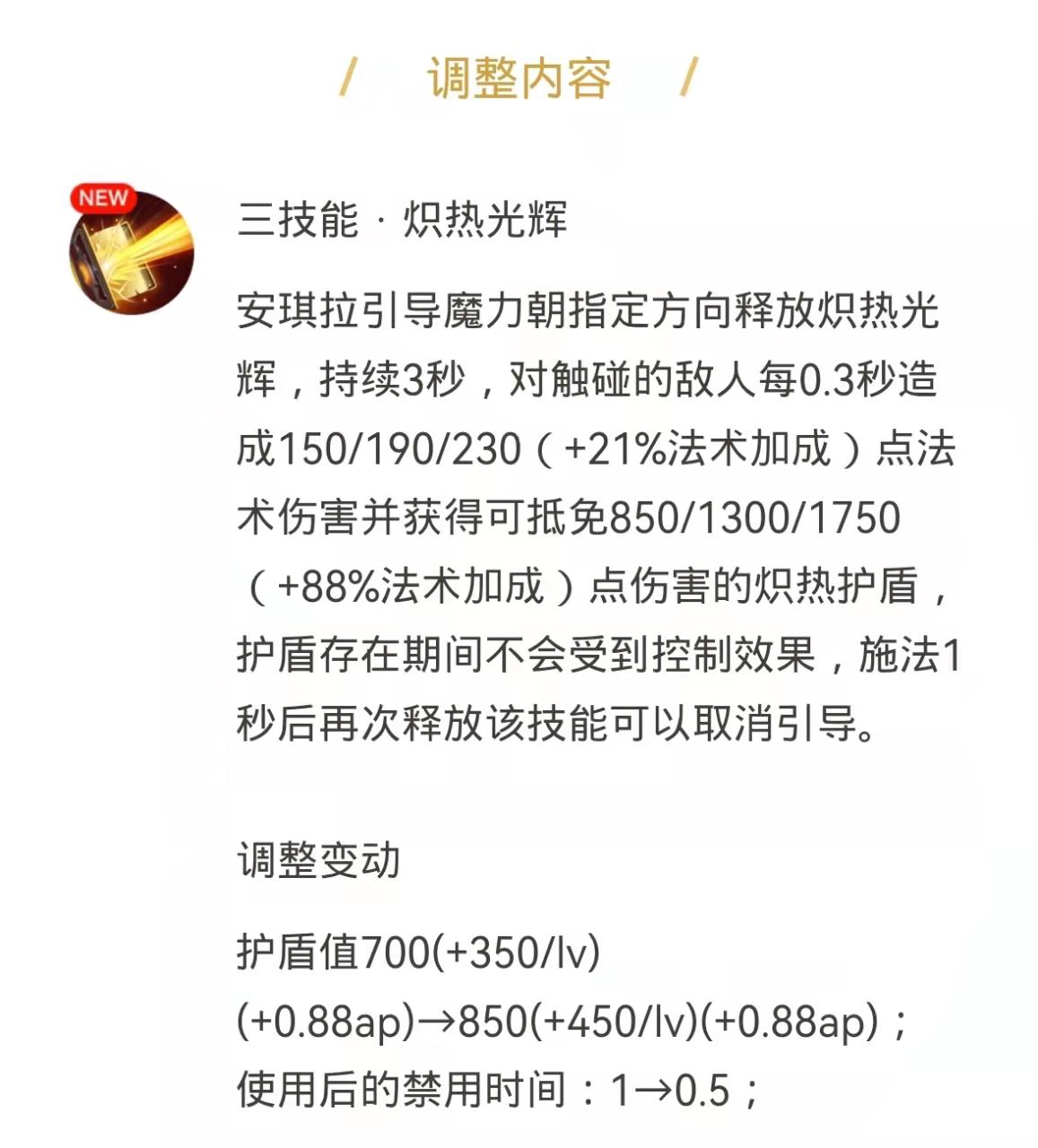 当然官方也在2月15日对安琪拉的三技能进行了一次更新,将她的三技能形成的基础护盾值从700提升到了850点,并且将随等级提升的法术加成350提升到了450点,可以说这一次的调整,让安琪拉可行更加站得住脚。