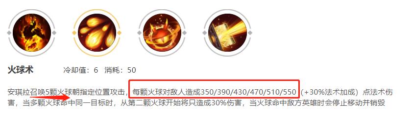 安琪拉的一技能是可行在短时间内释放出五个小法球,而这里需要注意的点是只有第一个小法球可行对敌人造成高额的法术伤害,其他的4个法球只能对敌人造成30%的伤害值。